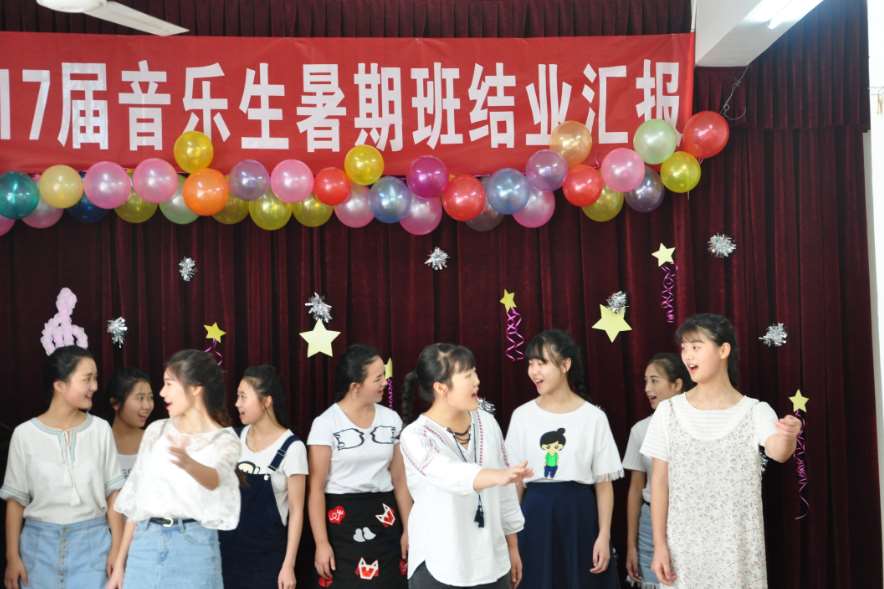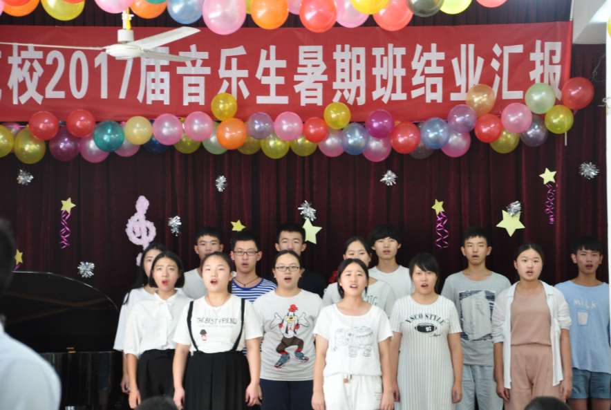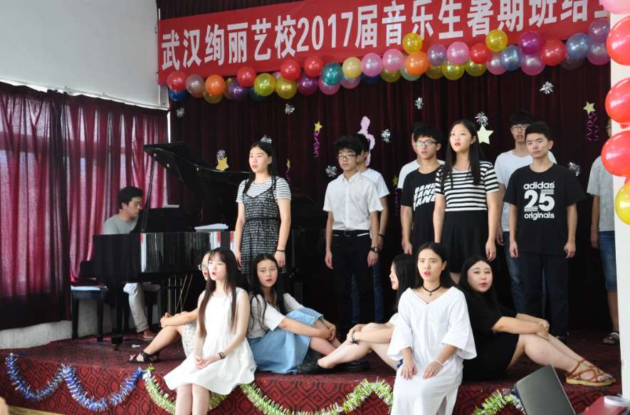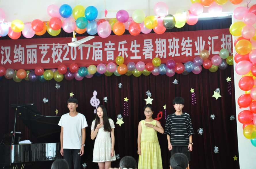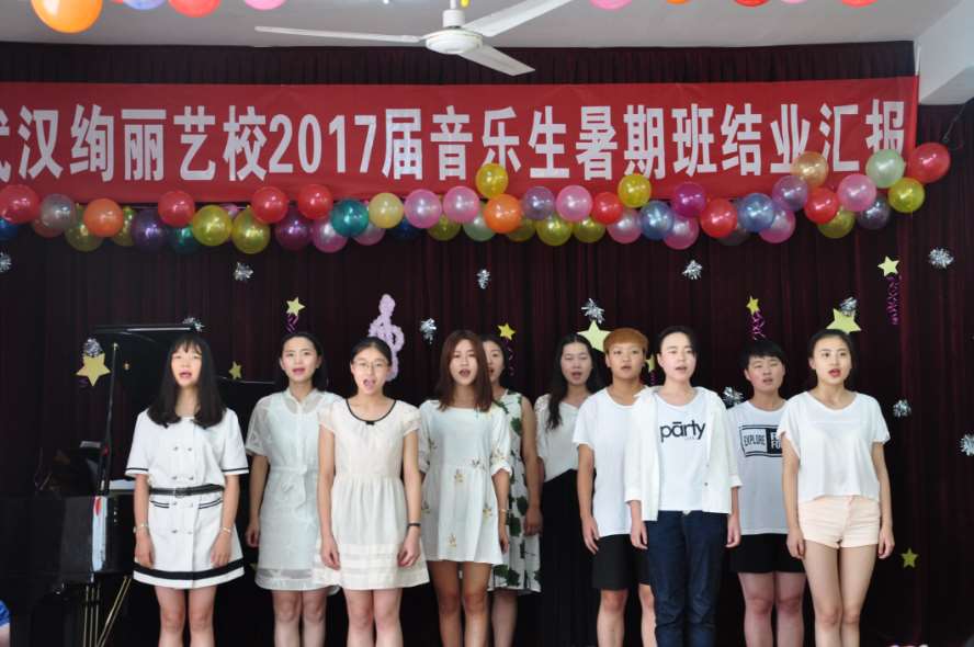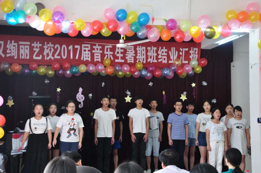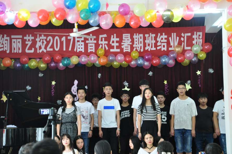 武汉绚丽艺校2017届暑期班圆满结业。通过一个暑期学习,绚丽艺校2017届暑期结业汇报表演于8月20日下午举行,并有部分家长和高中专业教师观看本次汇报表演。本次表演内容丰富多样,包括二重唱、小组唱、大合唱、钢琴独奏、四手联弹等,所有学生都积极准备,争取以最好的状态向家长和学校展示自己。这次汇报表演不仅见证了学生一个暑期的成长与进步,更重要的是让学生能够走上舞台,进一步的锻炼学生舞台表现能力,为最后的艺考做好充足的准备。